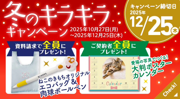 「ねこのきもち健保」限定キャンペーンは、キャンペーン期間中に当ホームページより手続きいただいた方が対象となります。お間違えないようご注意ください。