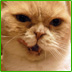 子どものころはまんまるな瞳、可愛らしい姿だったが大人になるにつれワル顔に……。甘えん坊で穏やかな優しい性格。狭いところに入るのが好きだったり、まるで人間のように二足だけで立つことも。猫の自覚なし!? な不思議かわいい猫。けっして怒ってなどいない。